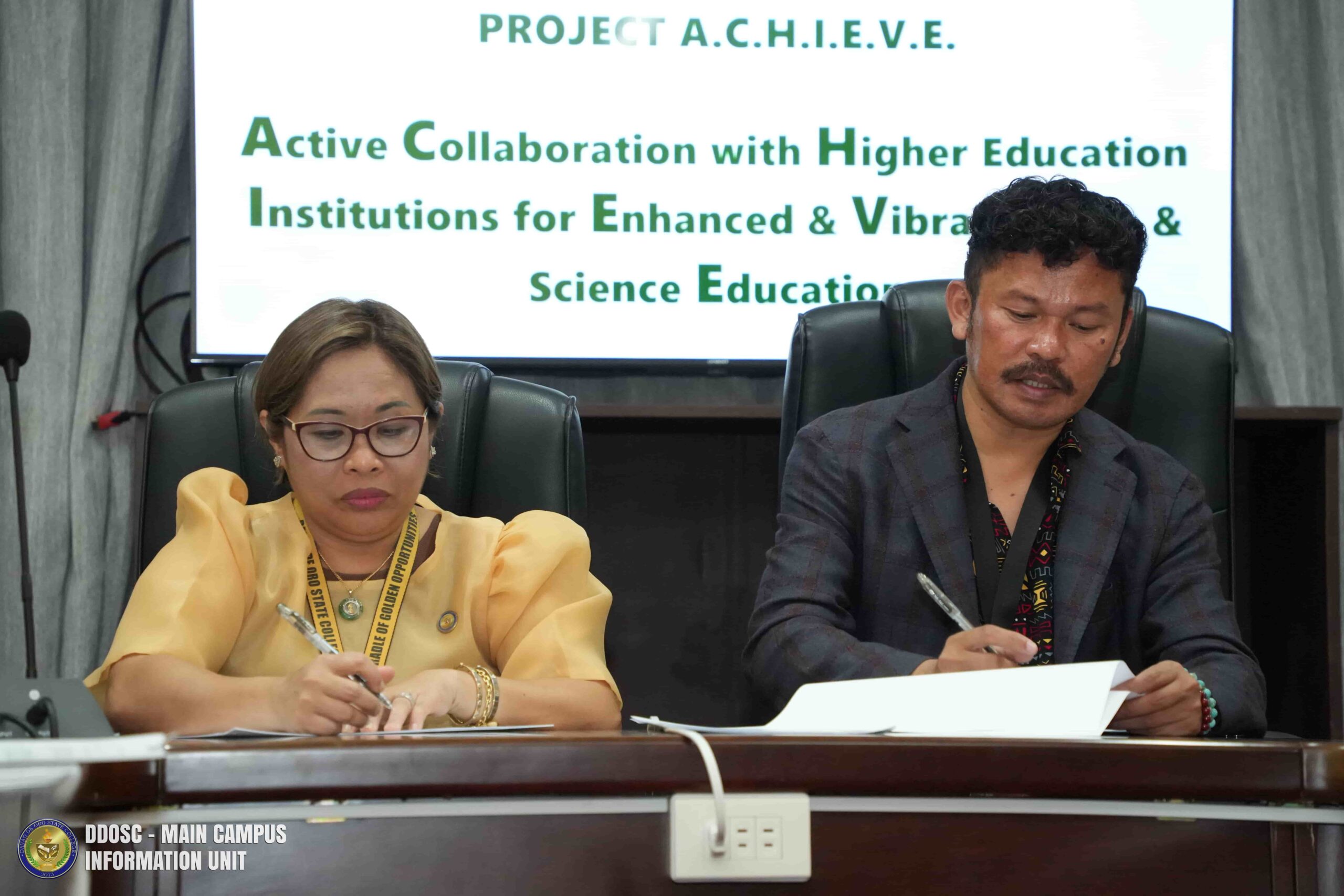 In a shared commitment to strengthen Science education across the province, the Department of Education – Davao de Oro (DepEd-DDO) and Davao de Oro State College formally signed a Memorandum of Agreement for the implementation of Project ACHIEVE on November 11, 2025, at the DDOSC Board Room in Compostela.