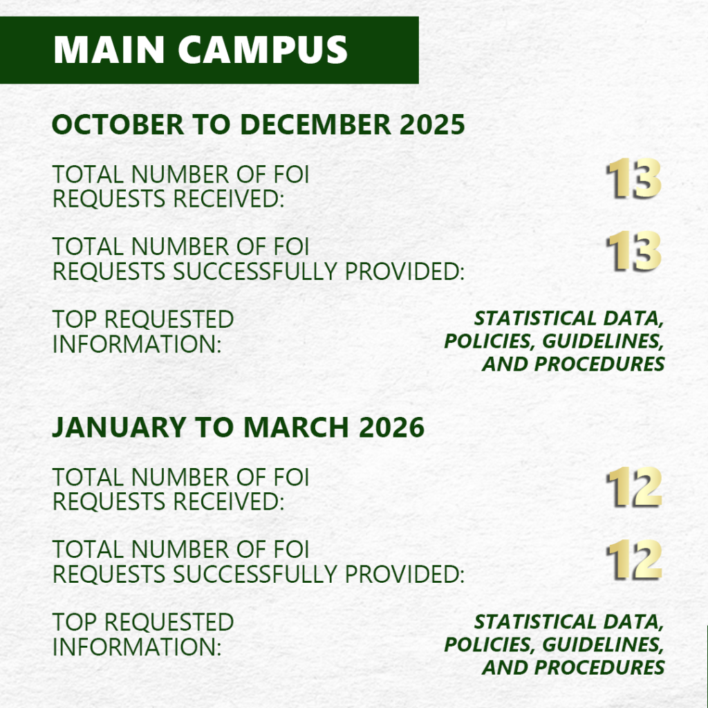 From October to December 2025, the Main Campus received a total of 13 FOI requests, and 12 requests from July to December.