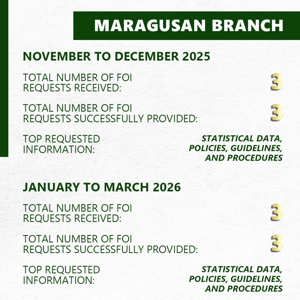 The Maragusan Branch received 3 FOI requests from November to December 2025, and another 3 requests for January to March 2026.