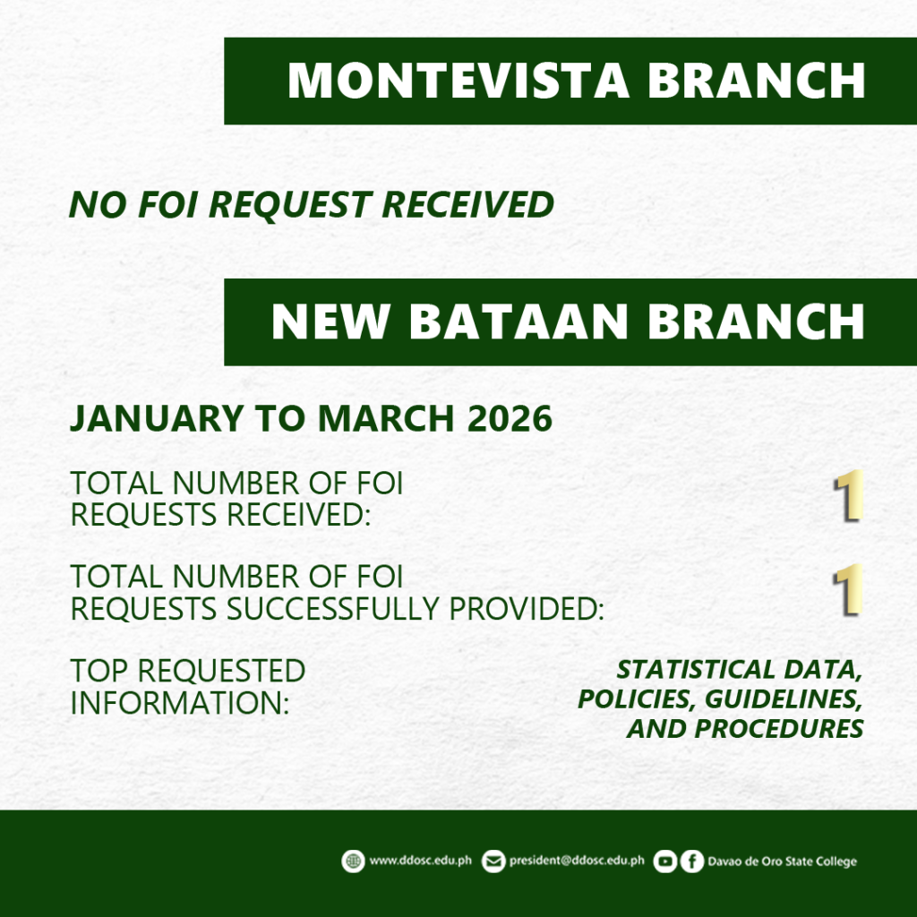 [DdOSC FOI UPDATES] in line with Executive Order No. 02, or the Executive Order on Freedom of Information (FOI), which mandates full public disclosure of all government records within the Executive Branch and its agencies, Davao de Oro State College has implemented the Freedom of Information (FOI) program.