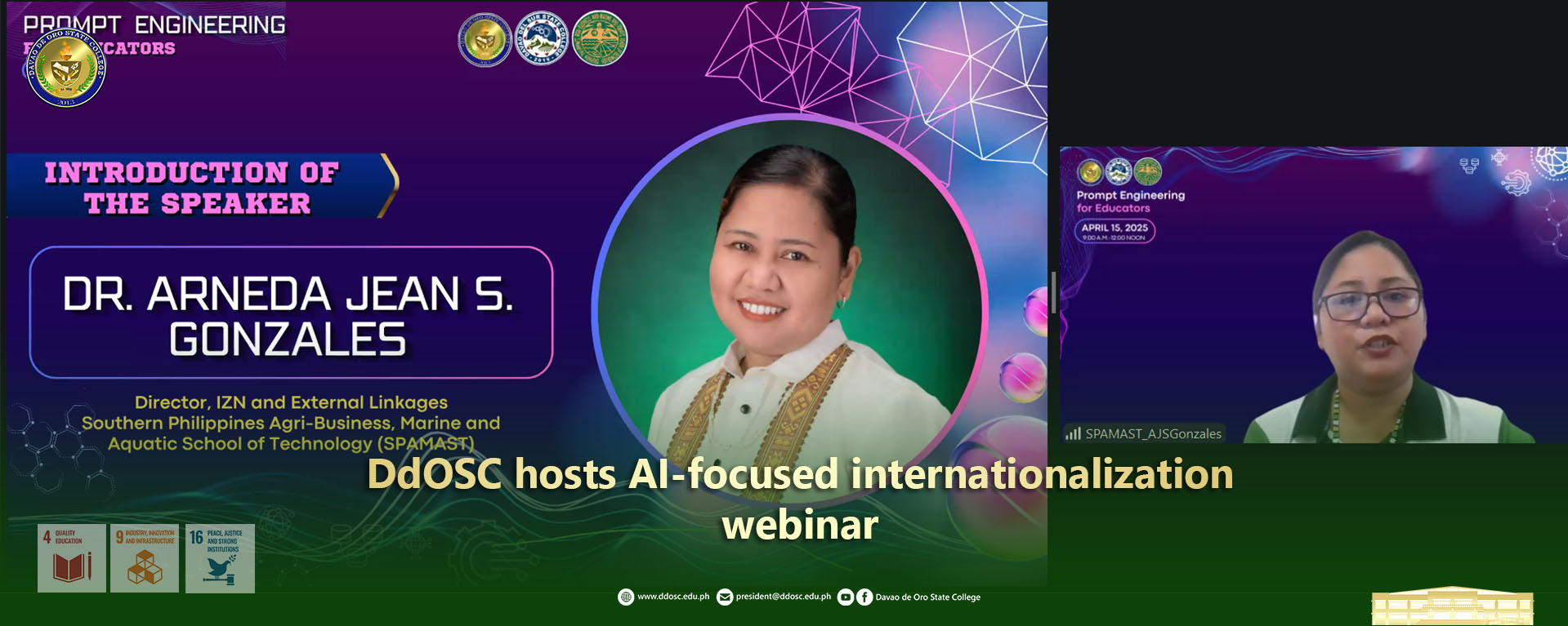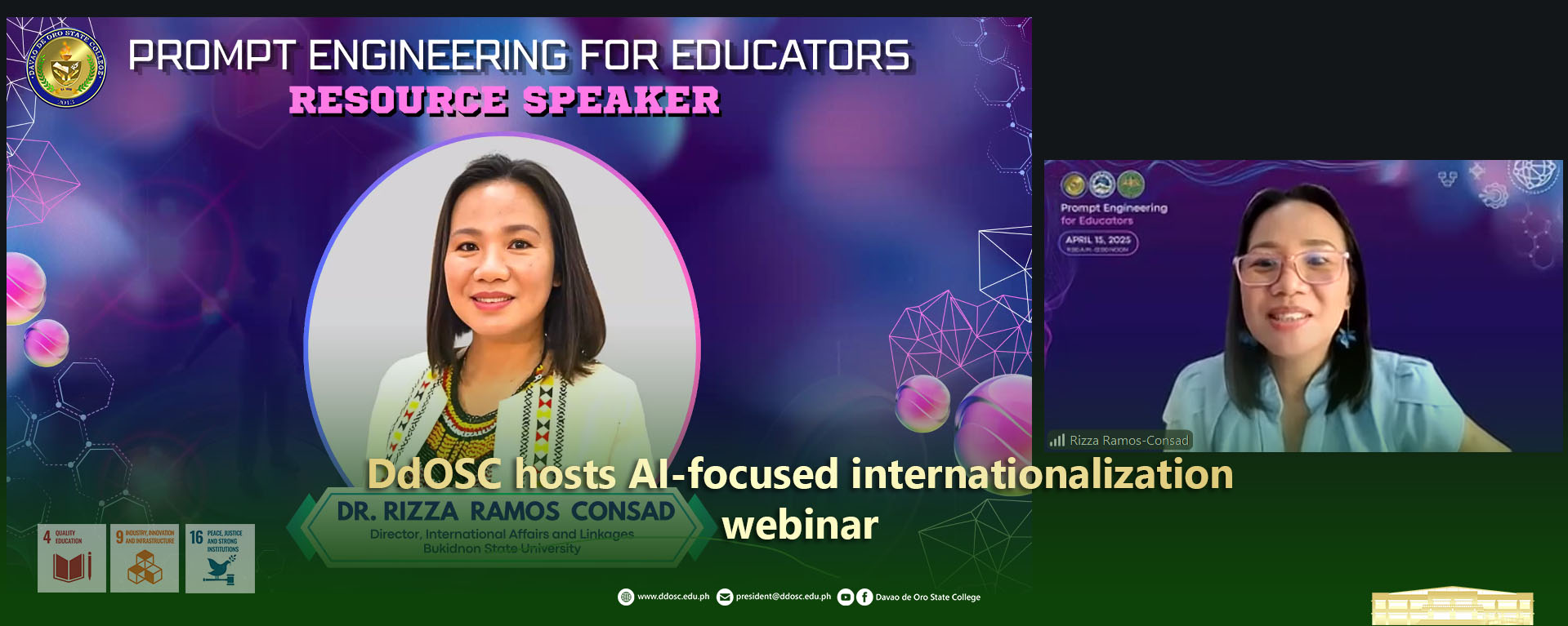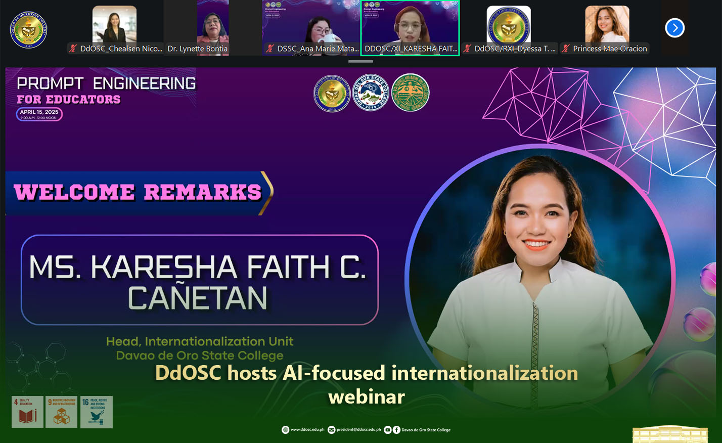 Davao de Oro State College strengthened its push for global academic alignment in the age of Artificial Intelligence (AI) by hosting the webinar dubbed “Prompt Engineering for Educators” today, April 15, 2026, via Zoom Teleconference.