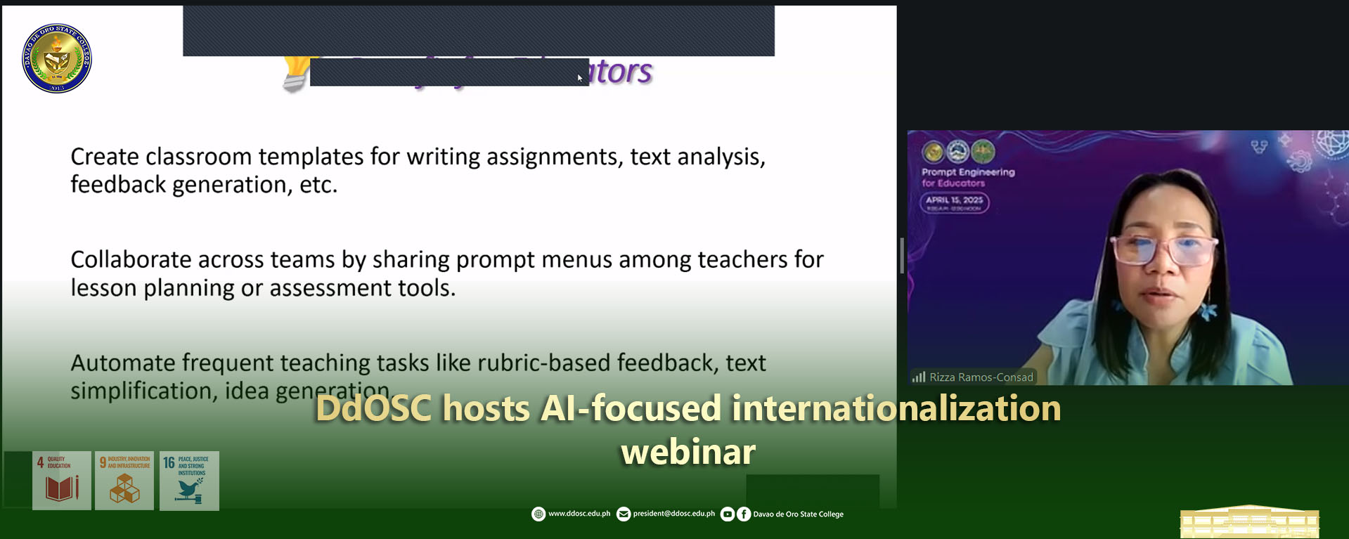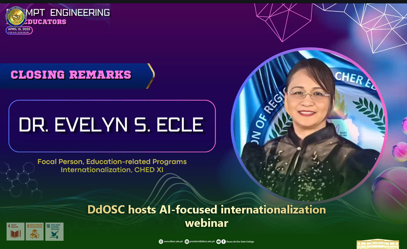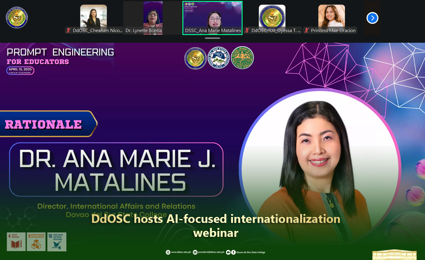 Davao de Oro State College strengthened its push for global academic alignment in the age of Artificial Intelligence (AI) by hosting the webinar dubbed “Prompt Engineering for Educators” today, April 15, 2026, via Zoom Teleconference.