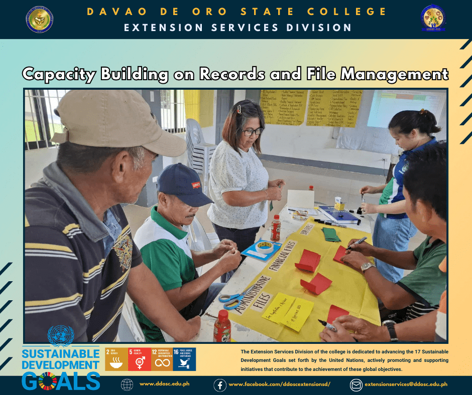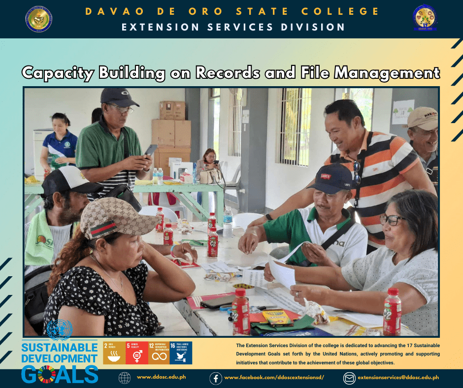 The Capacity Building on Records and File Management was successfully conducted on September 18–19, 2025, at the Farmers Training Center, DDOSC–Maparat, Compostela, Davao de Oro, in partnership with the National Irrigation Administration (NIA)–Davao de Oro.